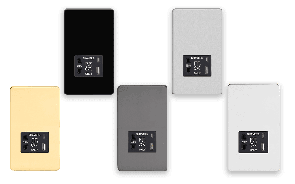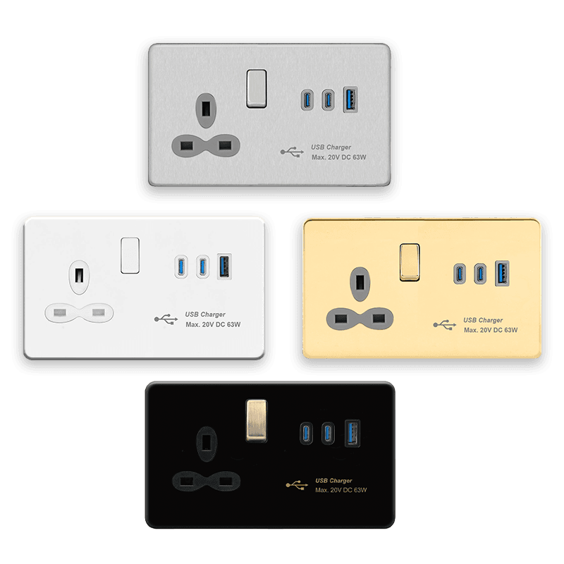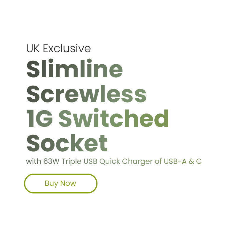 Slimline Screwless 2 gang 13A switched socket with USB (2.4A) and Bluetooth audio (TWS Function)