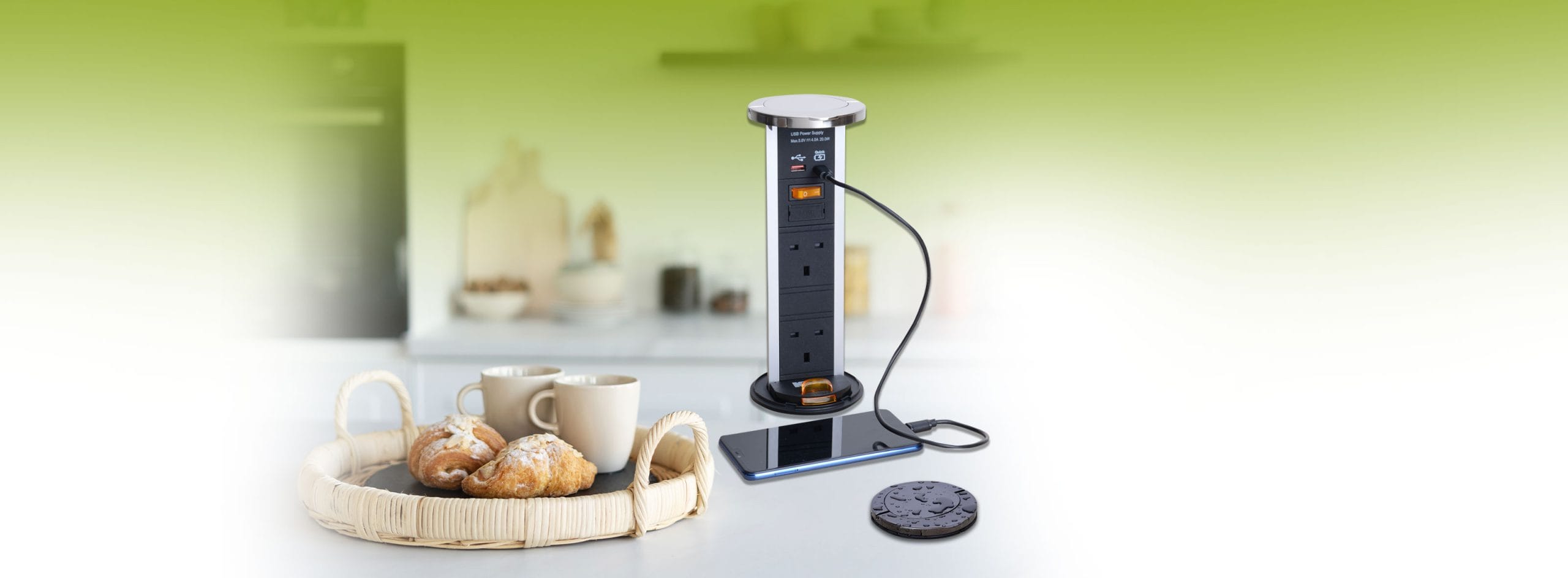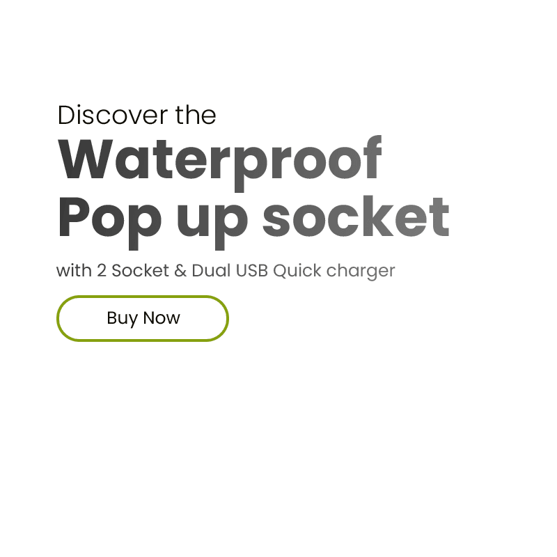 Waterproof – Pop up socket with 2 Socket, Dual USB-A charger & Bluetooth audio