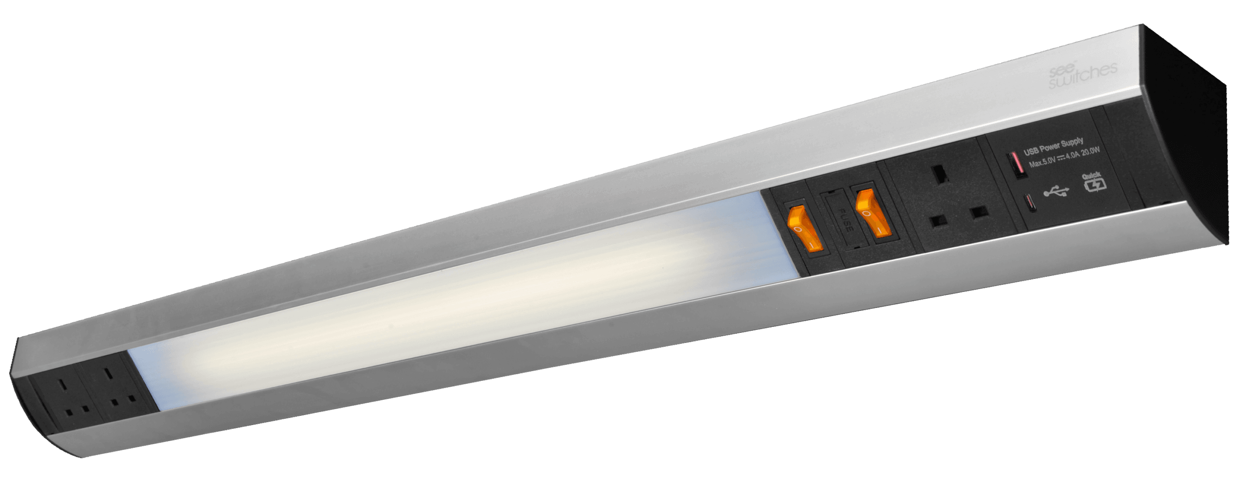 Power Station (Under Cabinet) – with T5 14W Fluorescent Light, 3 Socket & Dual USB Quick charger Specification